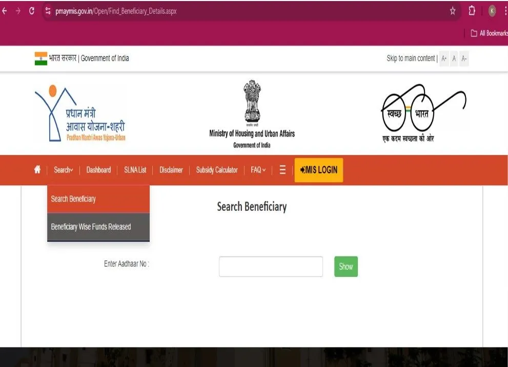 - pmaymis.gov.in वेबसाइट खोलें